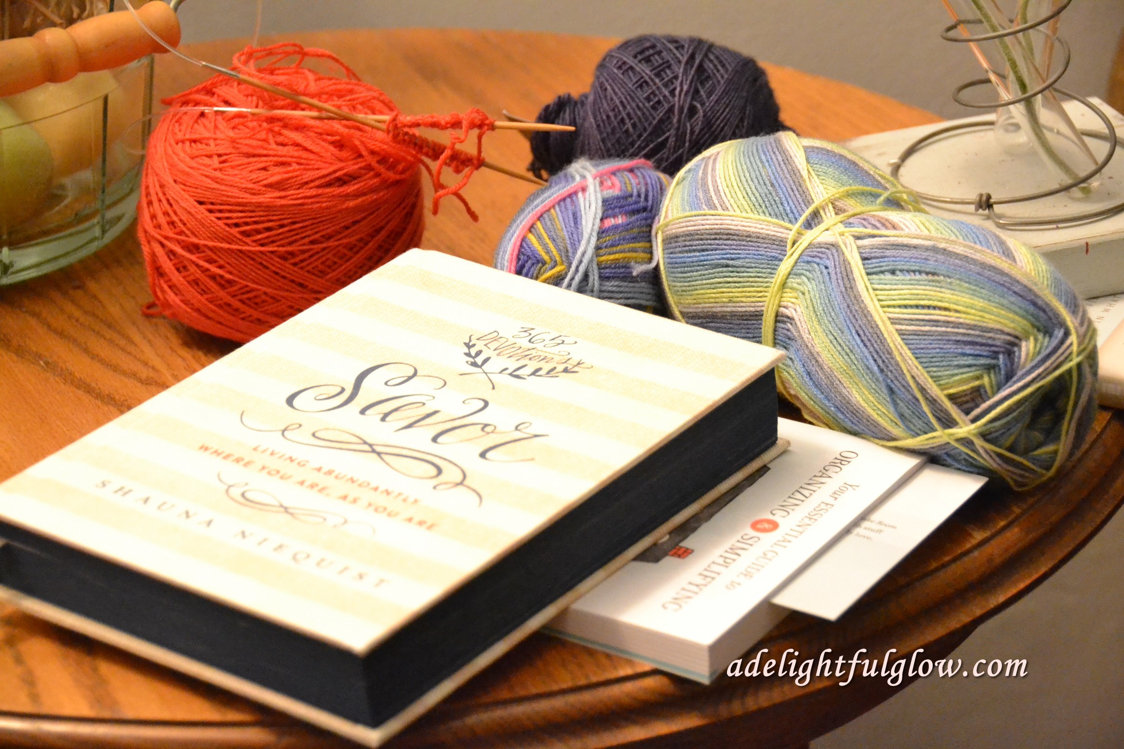 Yes!! My day is brighter after reading this. I like seeing your projects of yarn and all your books. The 31 bag looks perfect for knitting paraphernalia. Maybe I need one! Hope your baby sock project goes better now.