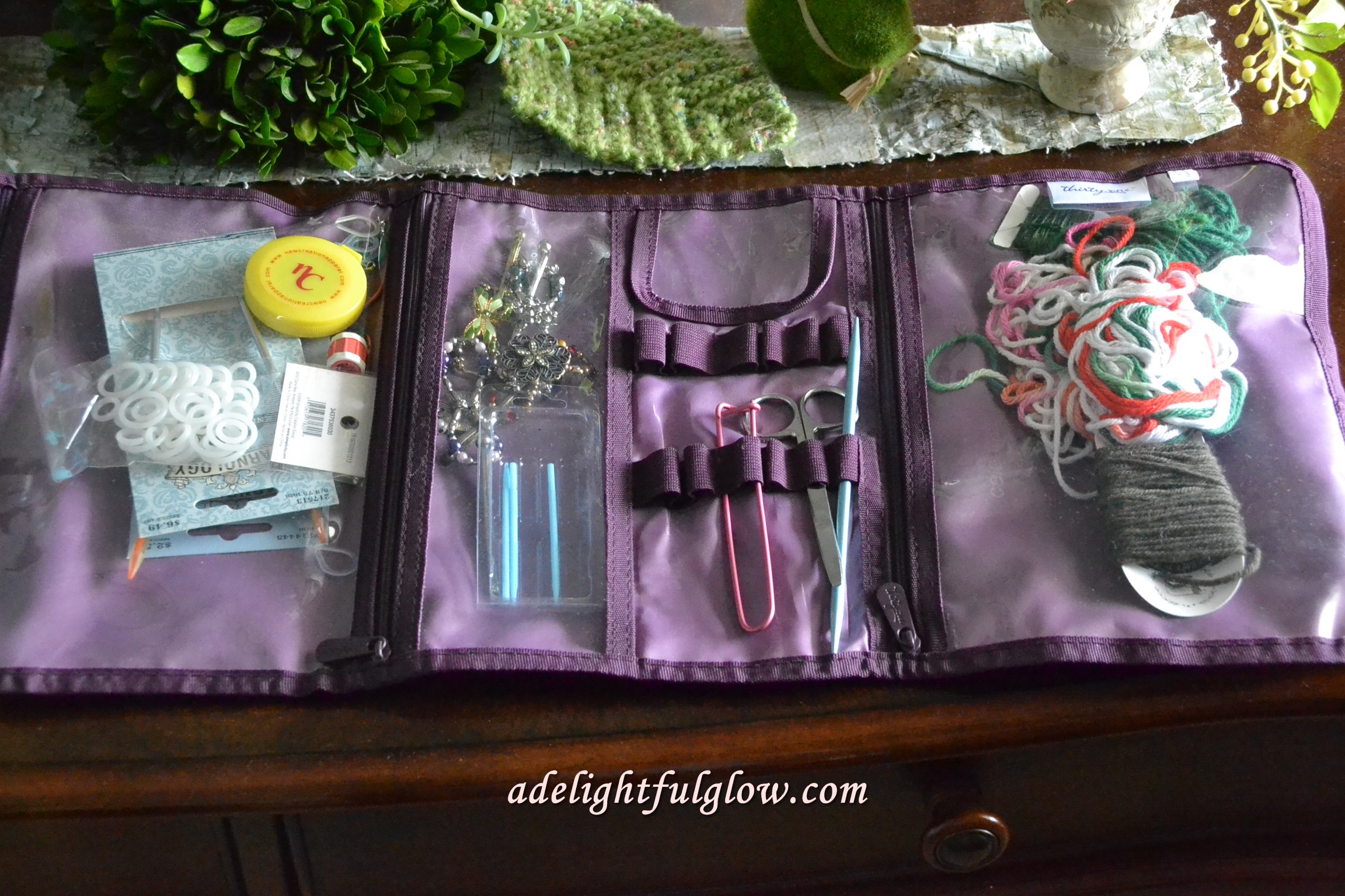 In other news, I reorganized some of my knitting tools into this bag yesterday.