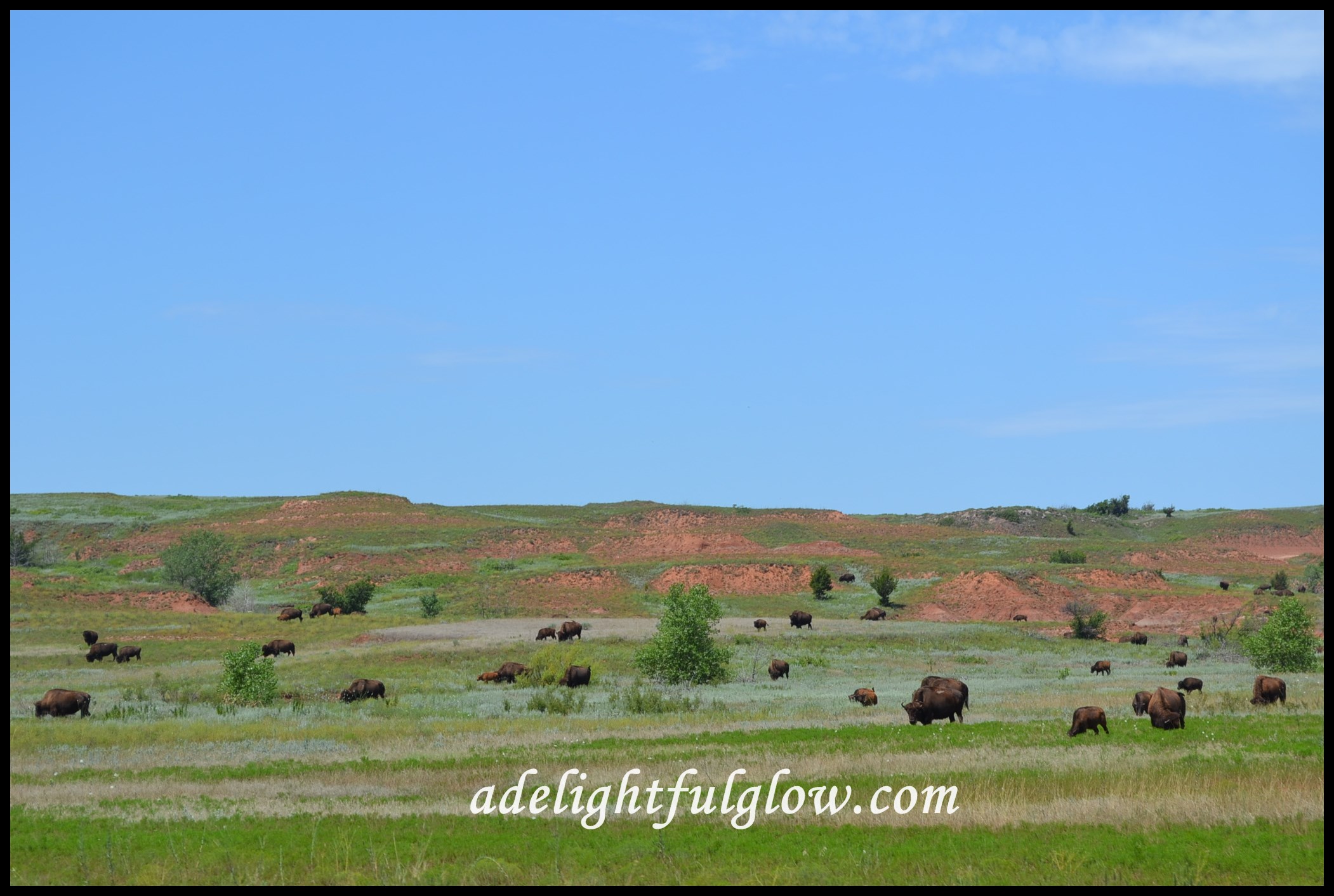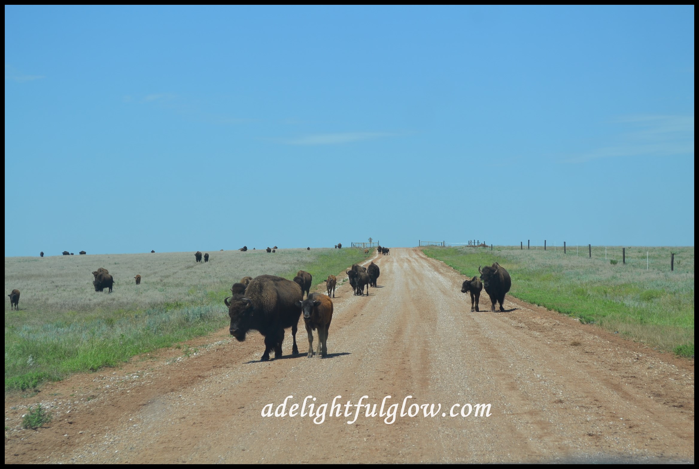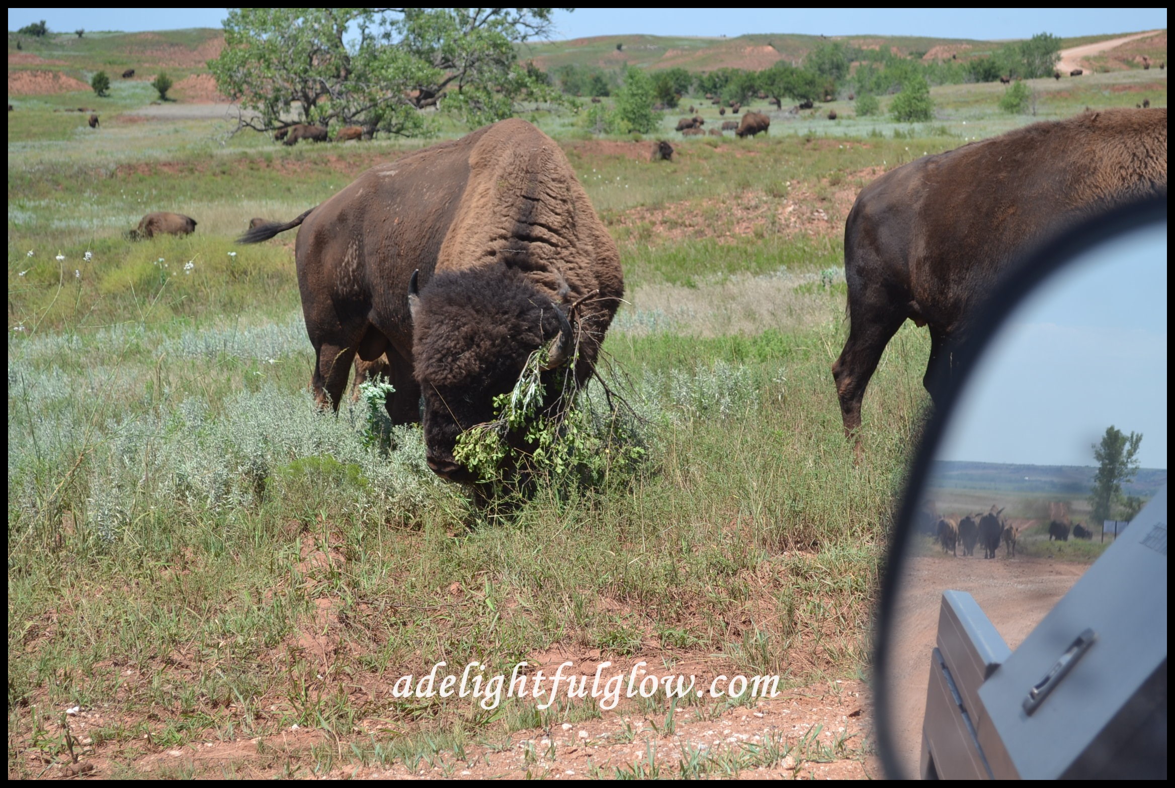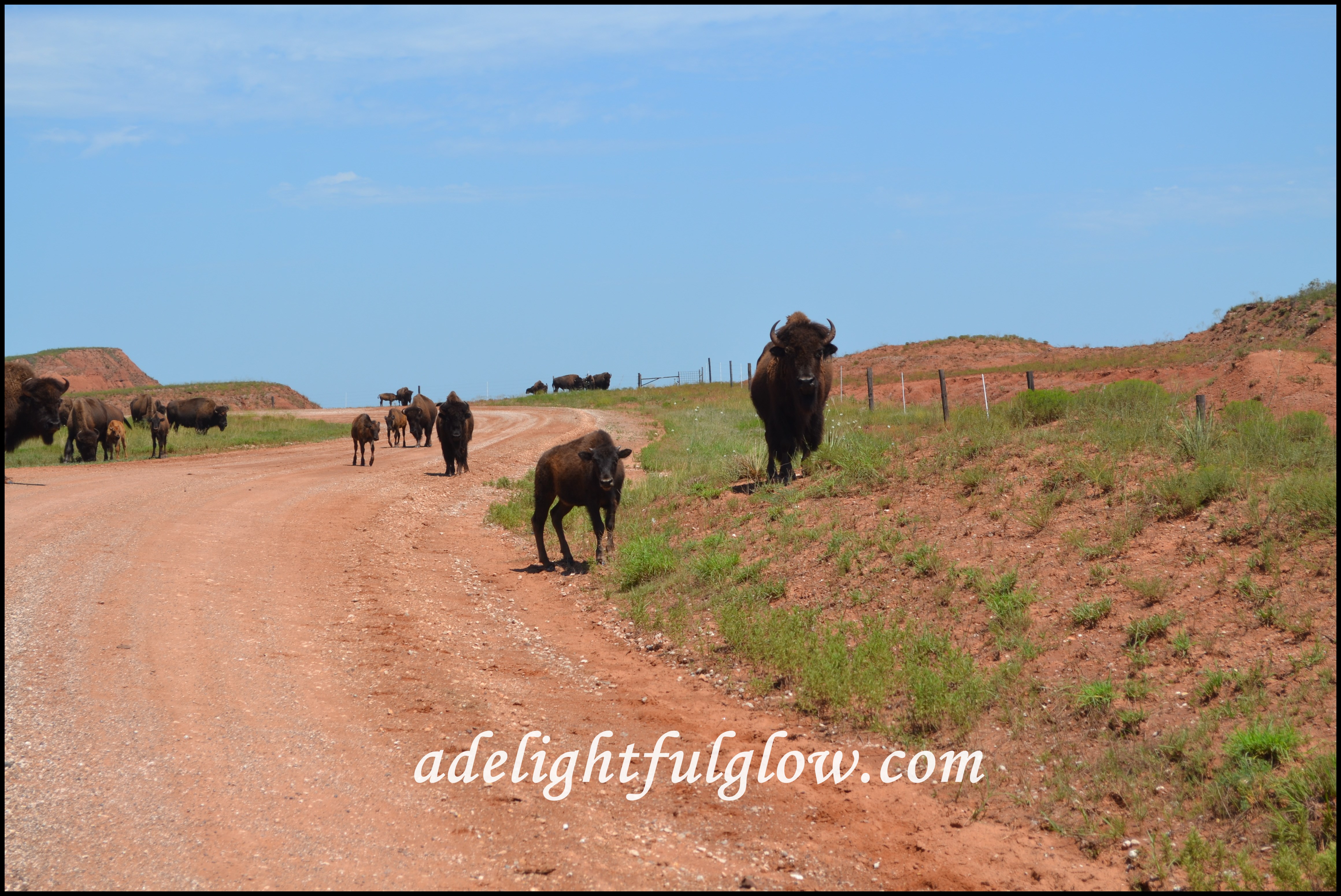 You can’t rollerskate in a buffalo herd, but you can be happy if you’ve a mind to! We didn’t rollerskate-instead we happily drove along and happily snapped some photos!